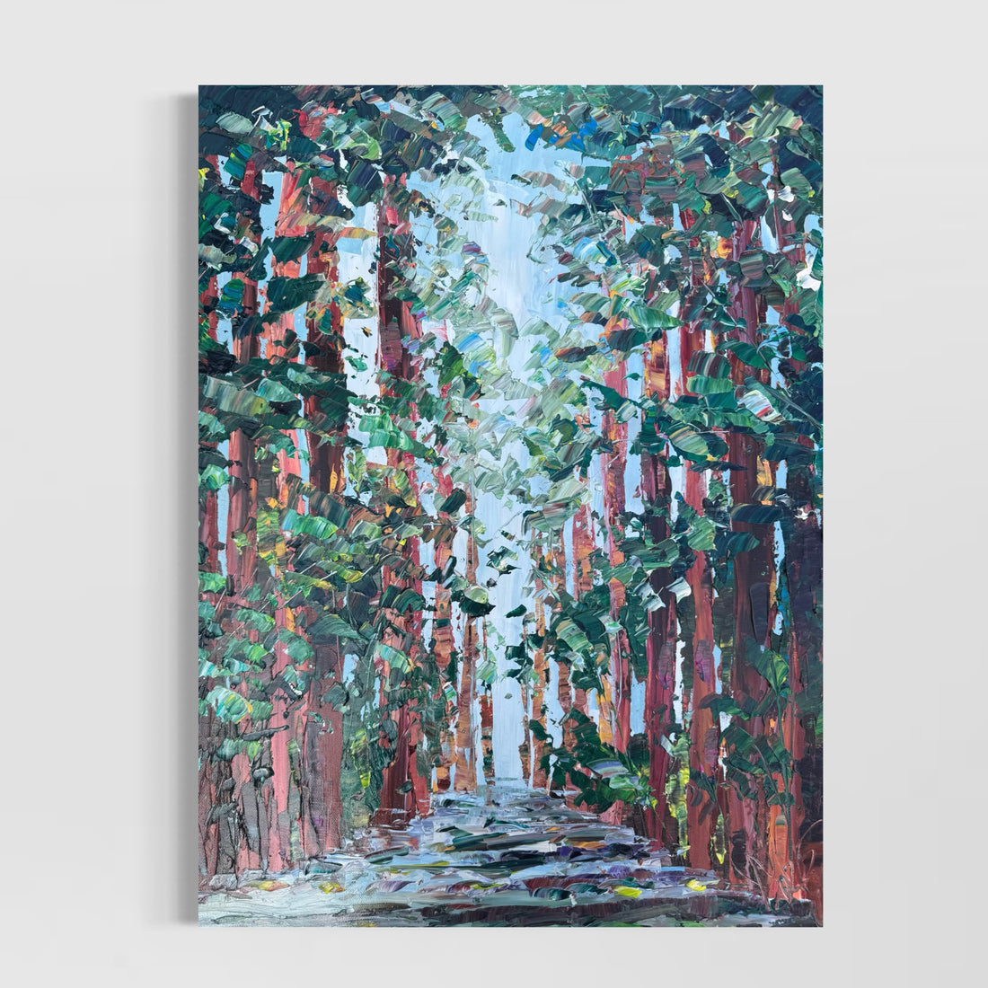 Soft light filters through the forest, creating a quiet path between the trees. Layers of...