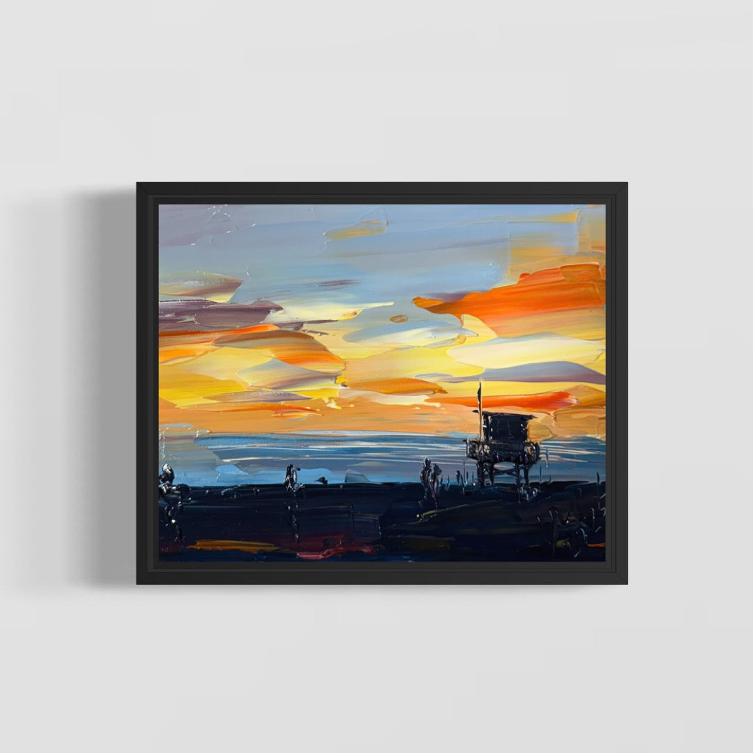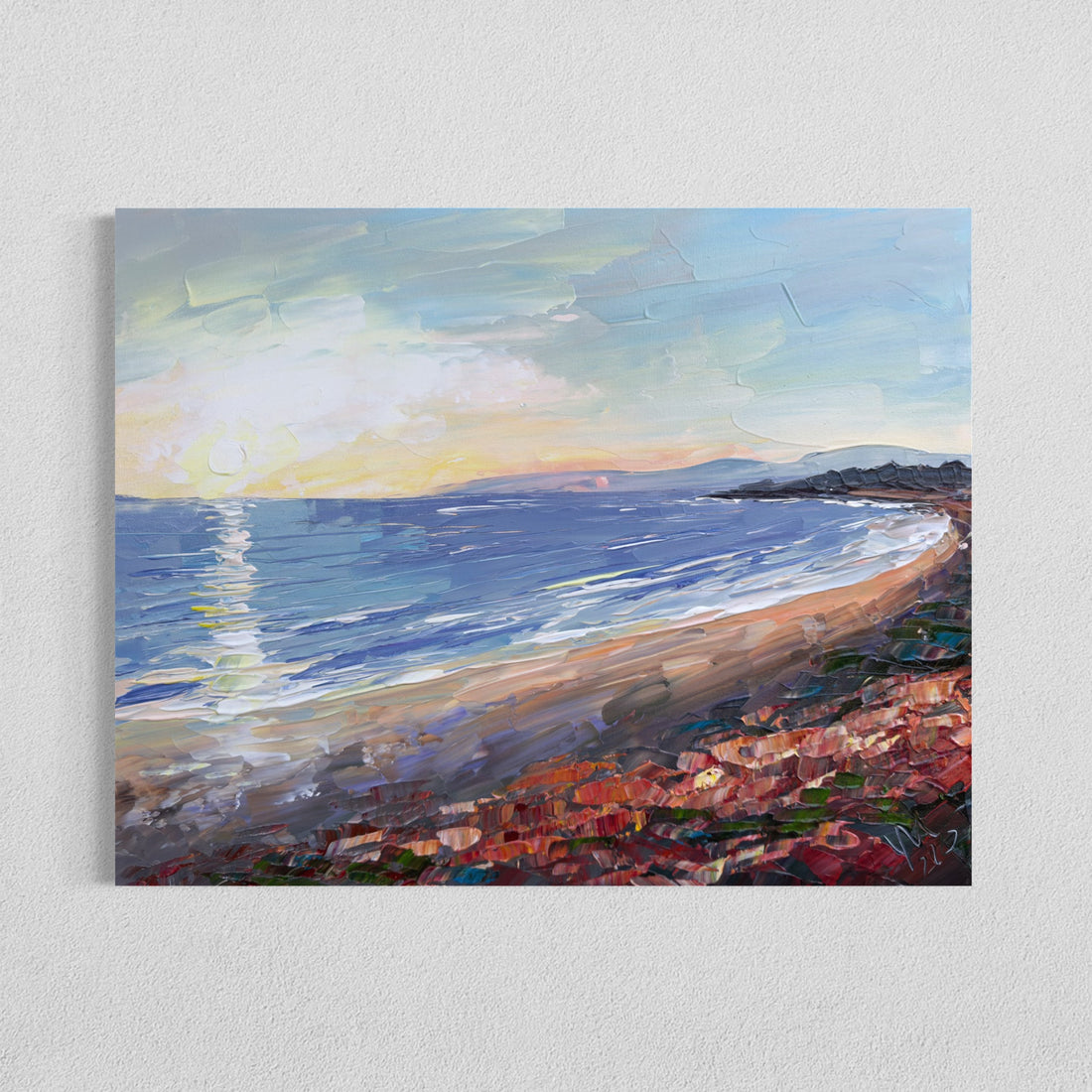 Warm evening light meets the calm ocean, filling the scene with softness and depth. Textured...