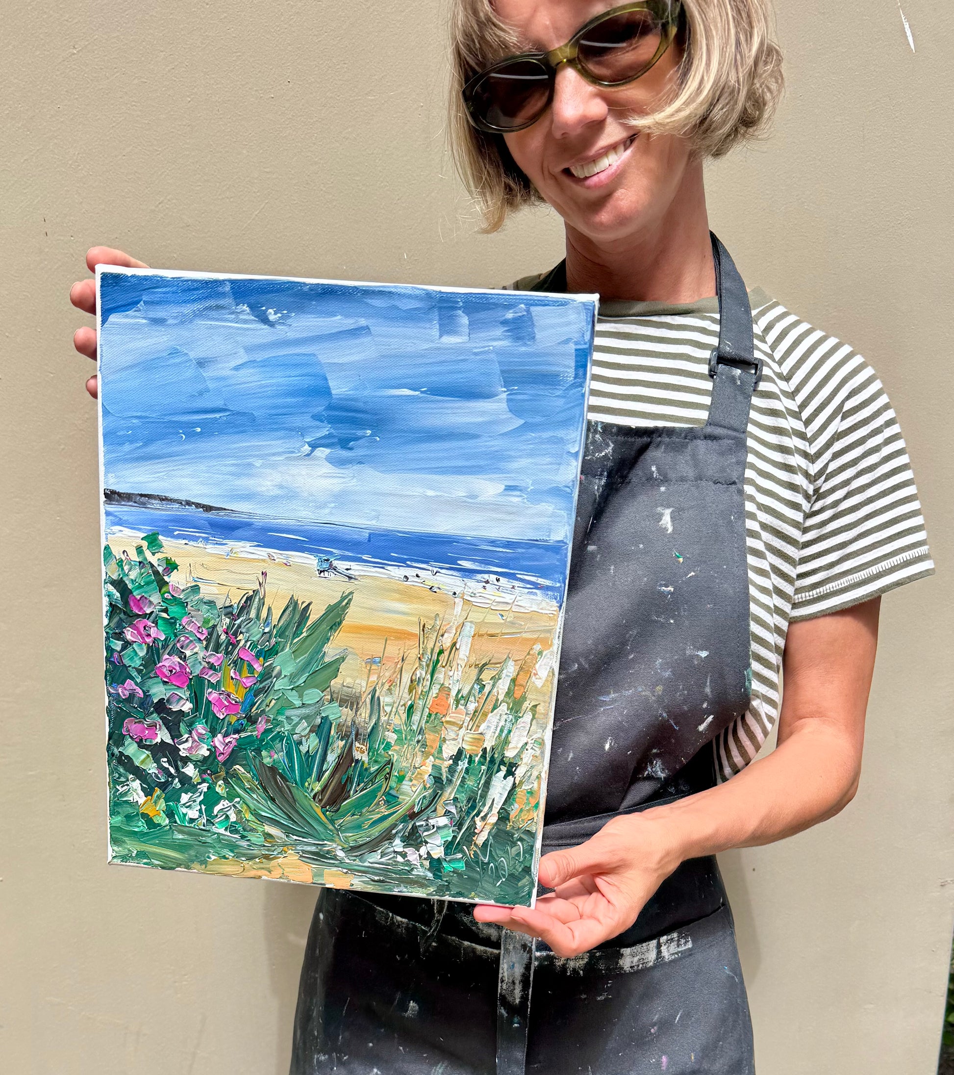 Set in a natural wooden frame, this 11×14 in painting is ready to hang and will instantly bring freshness, joy, and coastal charm into any space