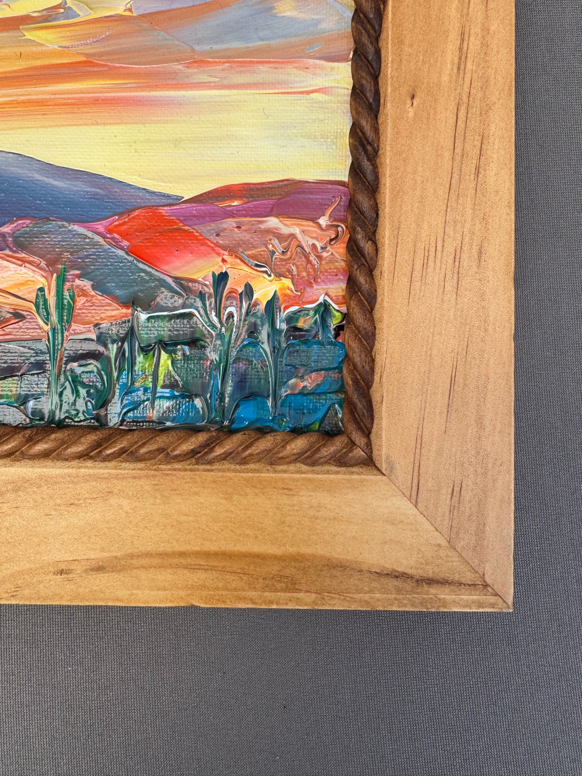 Expressive palette knife strokes capture light, texture, and the calm beauty of the desert evening.