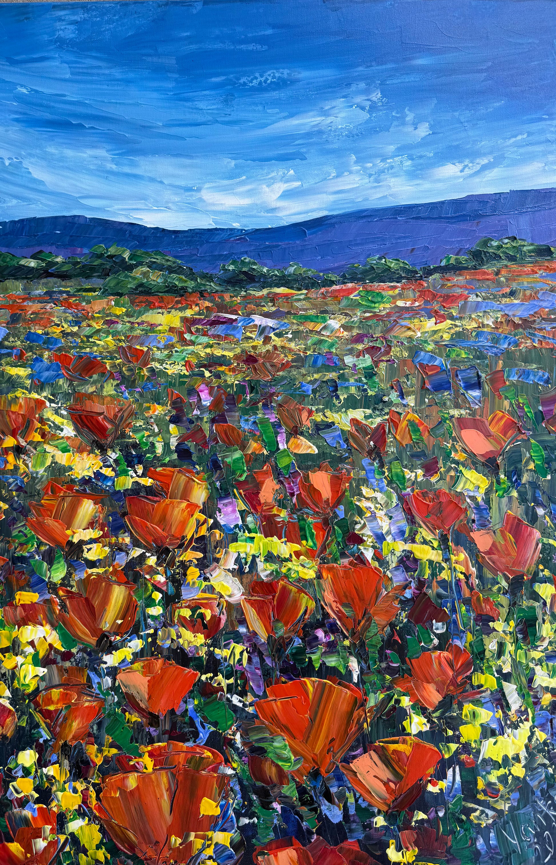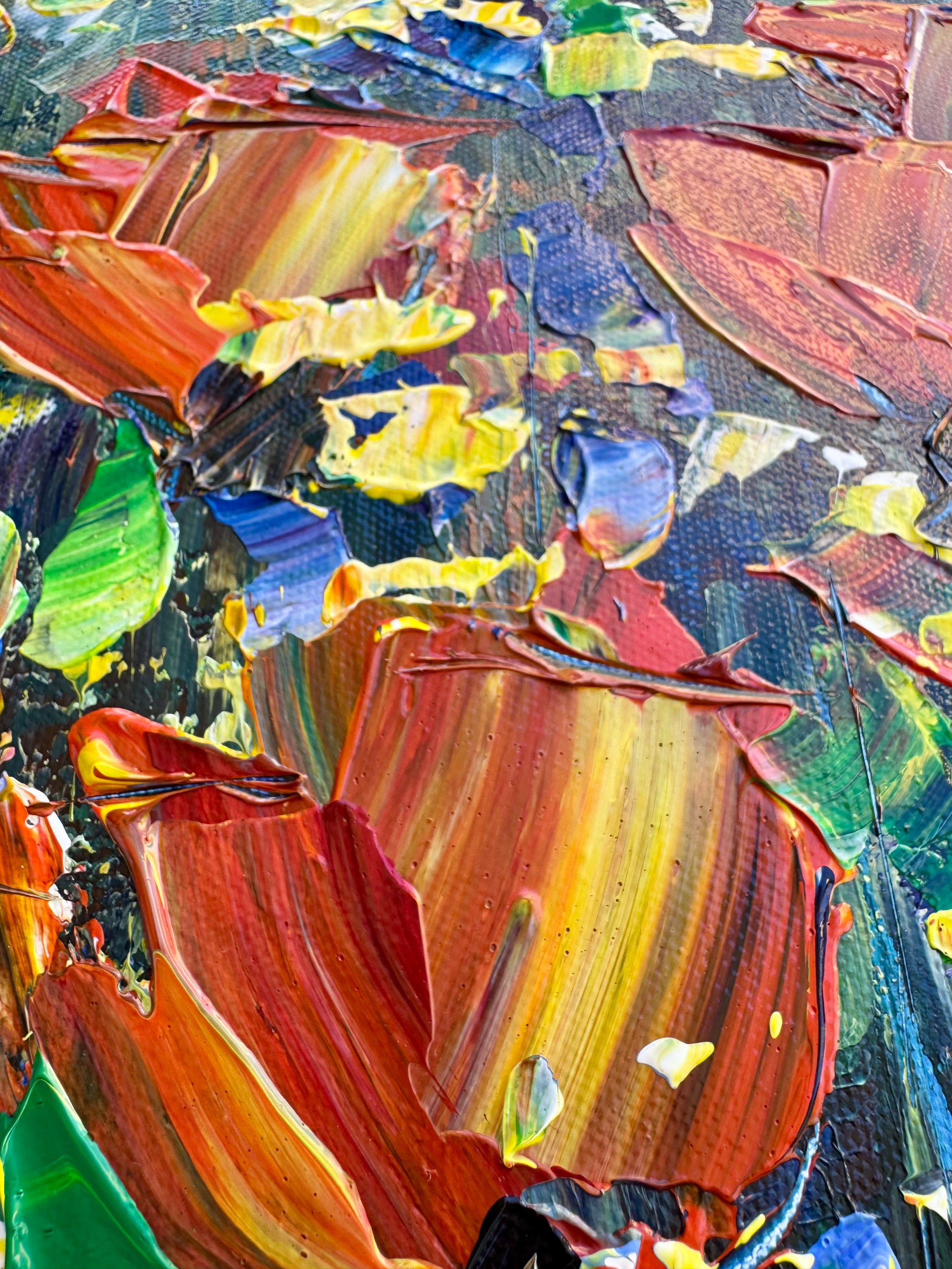 This painting brings brightness and warmth into your space. Like a window into a vibrant, sunlit world