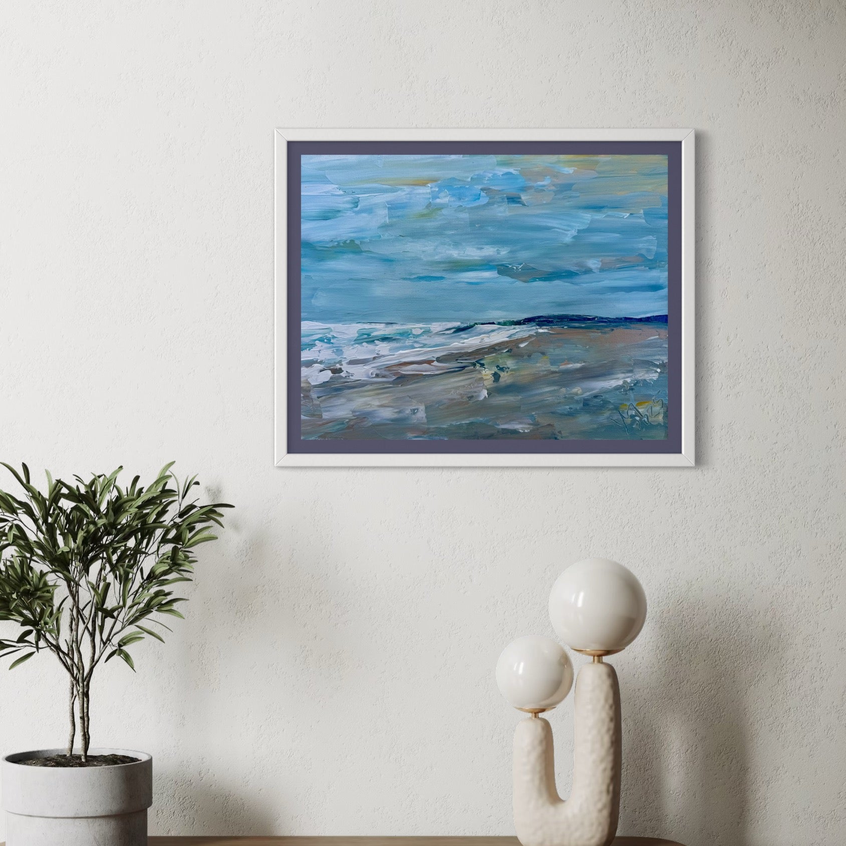 This intimate 11×14 in canvas carries the vastness of the ocean, making it a timeless piece for any interior.