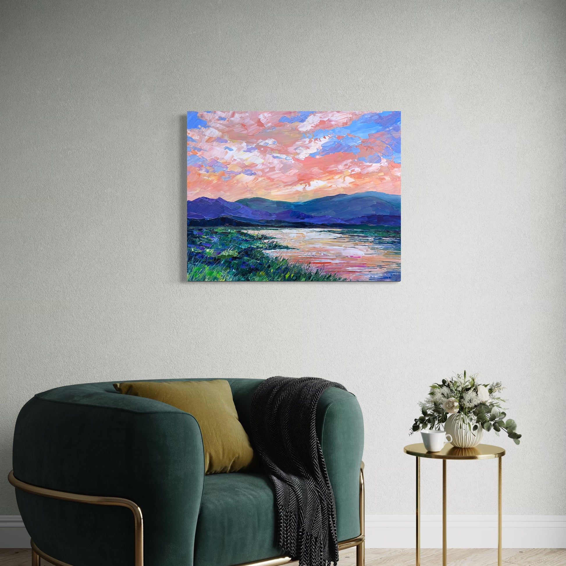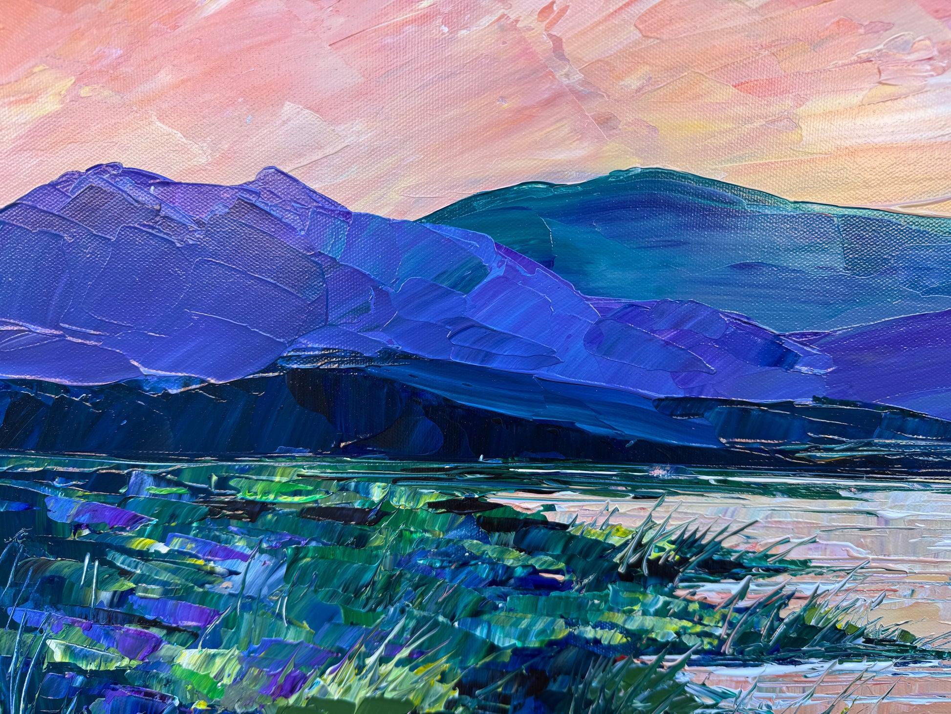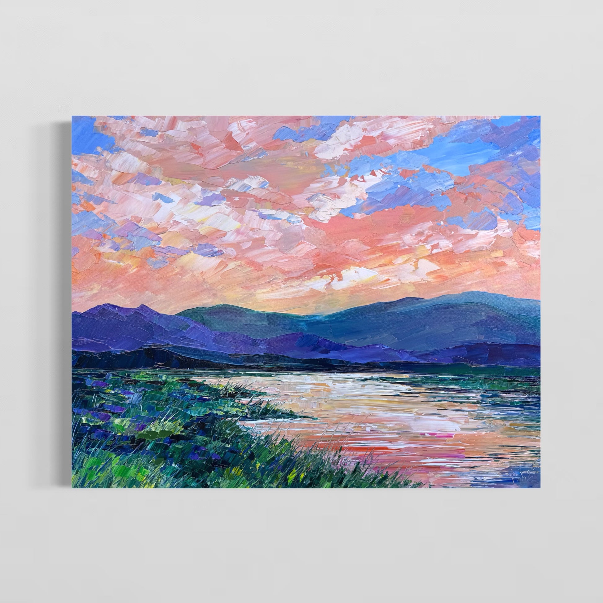 Bold palette-knife strokes bring texture, movement and that peaceful feeling of watching the day slowly fade.
